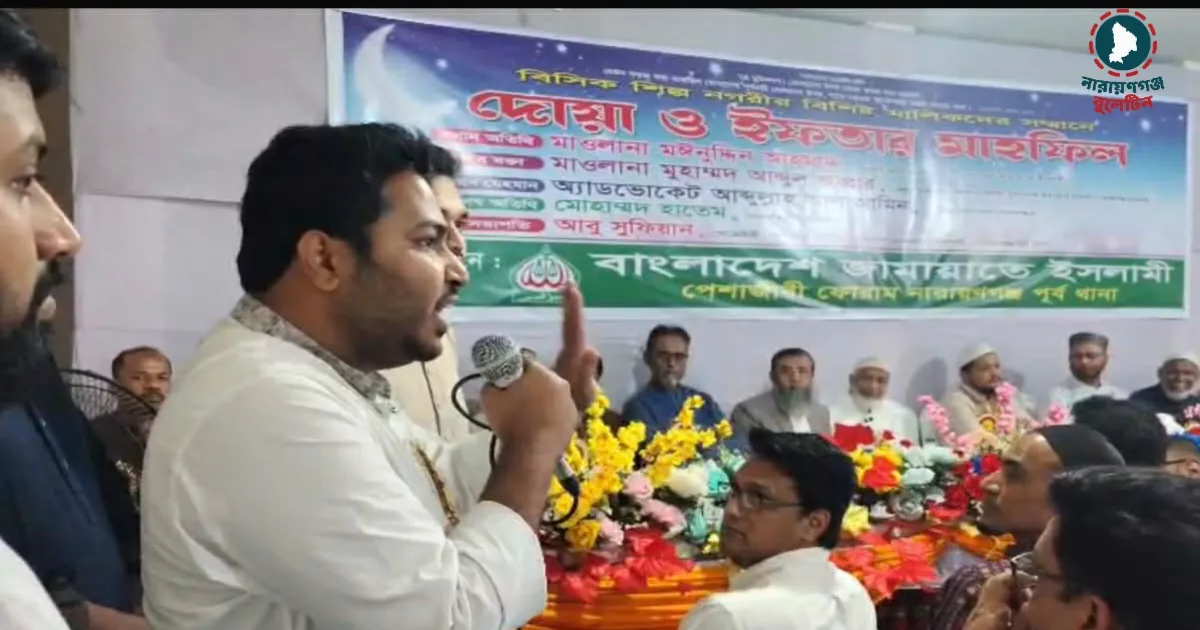 নারায়ণগঞ্জের ফতুল্লায় ইফতার অনুষ্ঠানে বিকেএমইএ’র সভাপতি হাতেমকে ফ্যাসিস্ট আখ্যা দেয়ায় এনসিপির এমপি আব্দুল্লাহ আল আমিনকে ঘেরাও করে বিক্ষোভ।